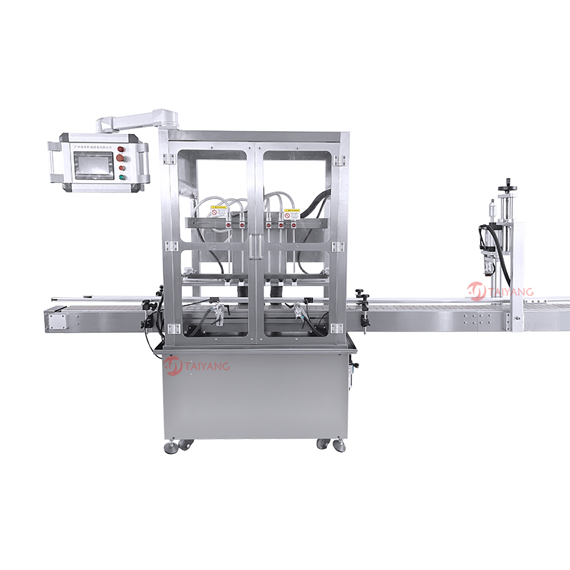 이 타이 안 6 헤드 액체 충전 및 캡핑 기계에는 6 개의 충전 헤드가있어 효율적인 충전 작업을 달성 할 수 있으며, 특히 액체 물을 채우는 데 적합한 효율적인 충전 작업을 달성 할 수 있습니다. Taiyang 6 개의 헤드 액체 충전 및 캡핑 기계는 자기 펌프 리프팅 충전 방법을 채택하며 서보 모터에 의해 구동됩니다. 빠른 응답 속도와 높은 정밀도의 특성이 있습니다. 이 타이 안 6 헤드 액체 충전 및 캡핑 기계는 충전 공정을 유연하게 제어하고 충전 공정의 안정성과 정확성을 보장하며 다양한 용량 사양의 컨테이너를 정확하게 채울 수 있습니다. 캡핑 부분에서는 충전 과정과 밀접하게 작동합니다.