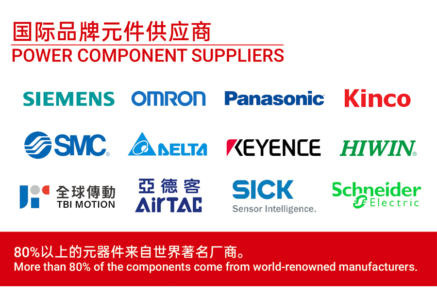 7.이 기계는 파나소닉 서보, Siemens PLC, Schneider Electric, TWT 모터 등으로 구성되어 있습니다. 실린더는 SMC 또는 AirTAC 브랜드를 채택합니다.